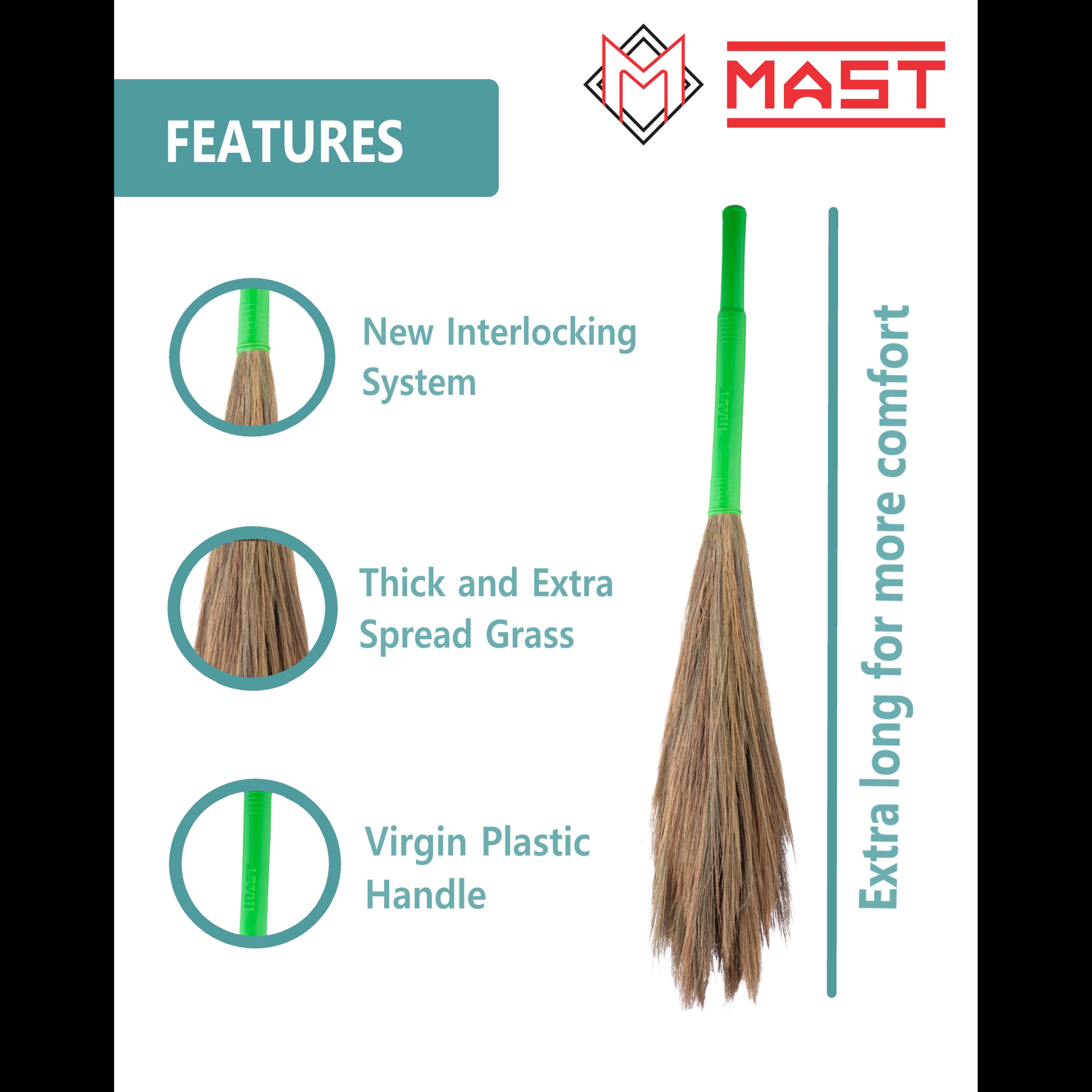 GoodMorning Grass Broom-Easy Grip Broom Stick For Home Cleaning: Handcrafted for long-lasting durability, the broom is quite easy to hold when cleaning the floor. Thanks to the long, Virgin plastic handle and smooth grips ensure a firm and sturdy grip. Long Length Ensures Cleaning Without Bending: This broom's length of 44 inches makes it simple to sweep the floor without leaning down and hurting your back. Its length makes it easier for you to reach underneath furniture deeply. Made Top Quality Grass for Efficient Cleaning: The best Meghalaya grass is used to make this broom, which is flexible, long-lasting, and leaves 50% less (Bhusa) dust than other local brooms. Traditional Yet Smart Broom For Your Smart Homes: A stylish smart broom for your home that cleans like a traditional broom but has the qualities and appearance of a modern broom. Now your broom can be as trendy as your smart home.