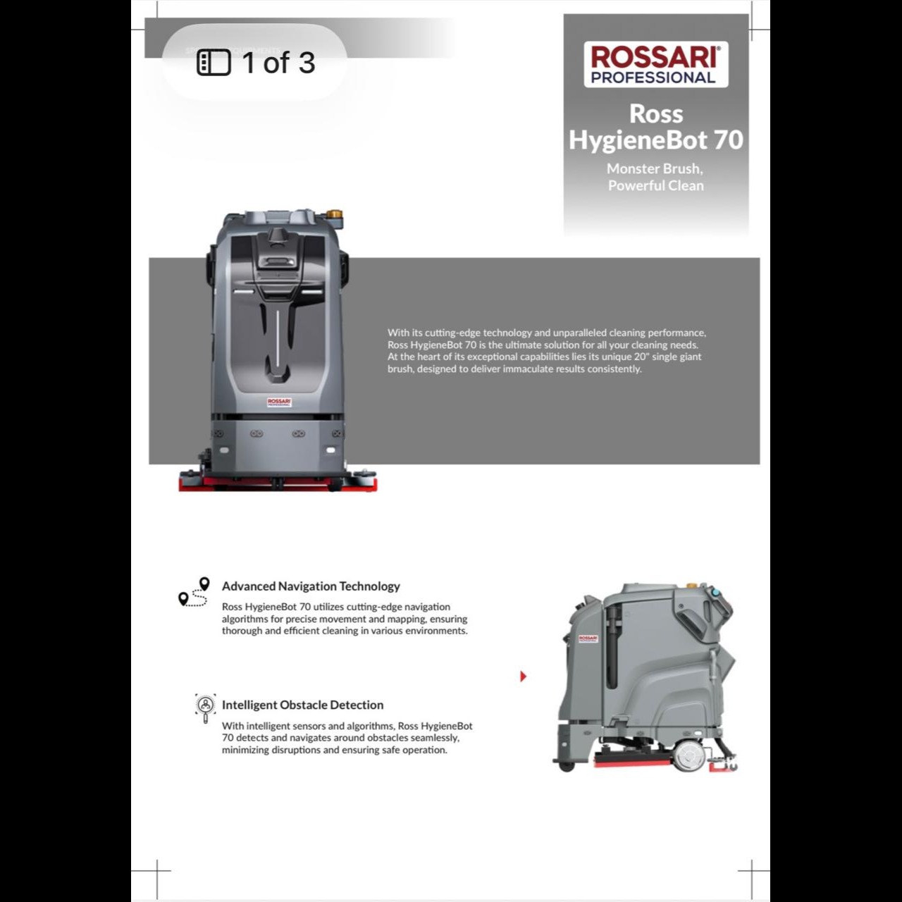 • Versatile Cleaning System - Sweeps, scrubs and vacuums different floor types with powerful suction.